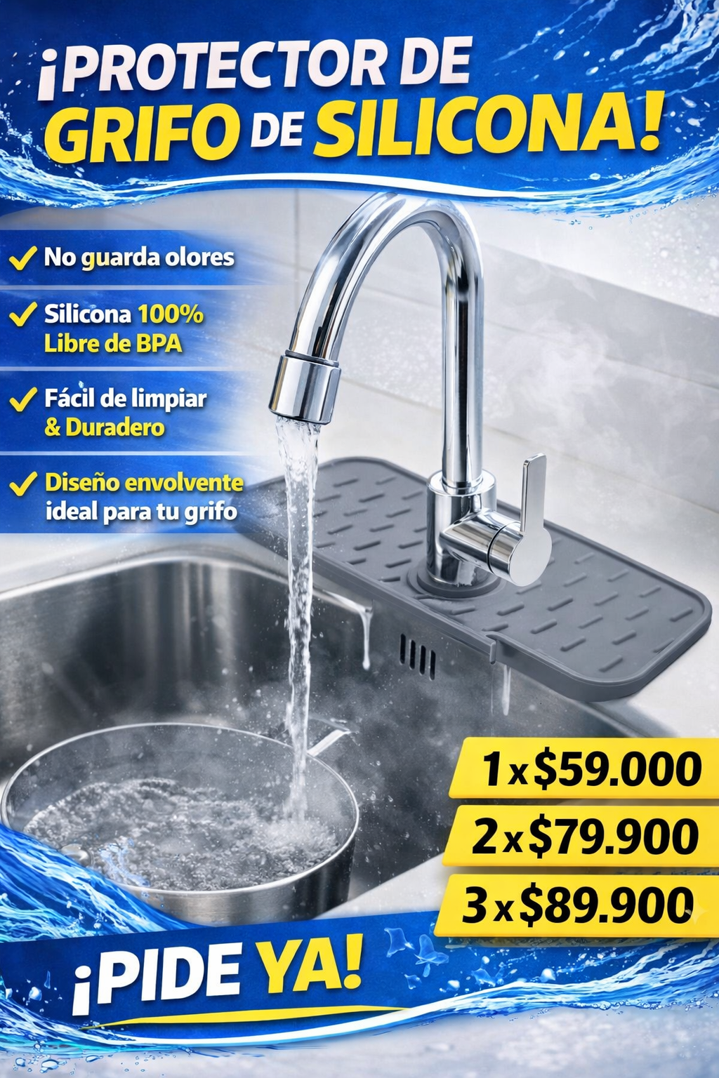 Totalmente. El protector cuenta con canales de drenaje integrados que guían el agua directamente hacia el fregadero, evitando que se acumule en la encimera.
