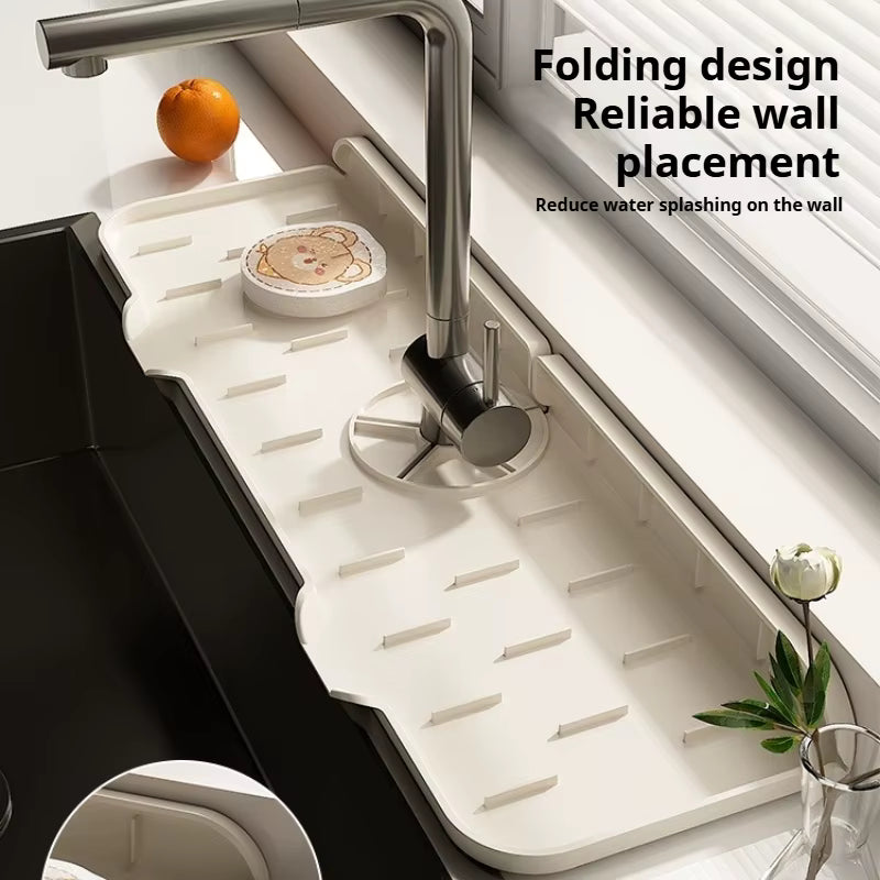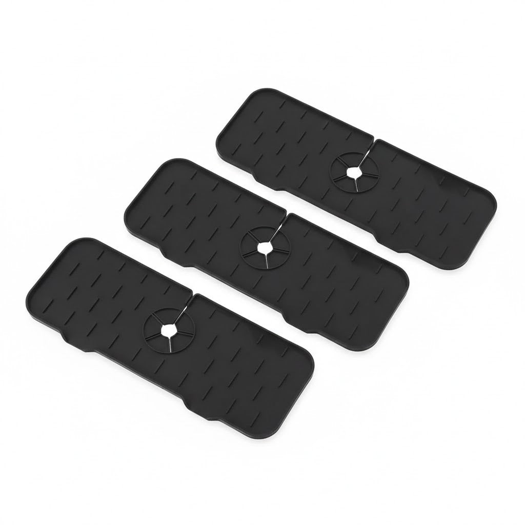 Mientras que un trapo convencional solo "esconde" el problema del agua, nuestro protector elimina el problema de raíz. Su diseño envolvente no solo mantiene seca la encimera, sino que también protege las juntas de tus muebles contra daños por humedad a largo plazo. A diferencia de las alfombras que absorben el agua y permanecen húmedas, este producto tiene canales inclinados que redirigen el agua directamente hacia el fregadero, evitando el estancamiento.