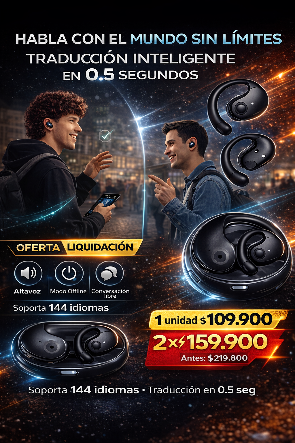 En un mundo cada vez más conectado, el idioma ya no debería ser un límite. Los Audífonos Traductores Inteligentes llegan para transformar la forma en que interactúas, viajas, estudias y haces negocios, ofreciendo una experiencia de comunicación más fluida, práctica y moderna.