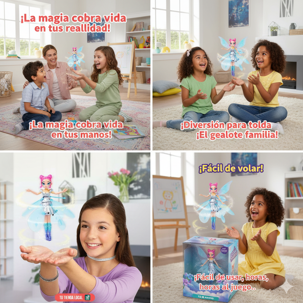 ¿Se imagina la cara de asombro de su hija al ver a una delicada hada voladora que responde únicamente al movimiento de su palma? Olvídese de los drones complicados; gracias a su sensor de proximidad inteligente, esta muñeca Hada Voladora detecta su mano y se eleva o desciende, danzando en el aire con sus alas brillantes, sin necesidad de cables ni control remoto.
