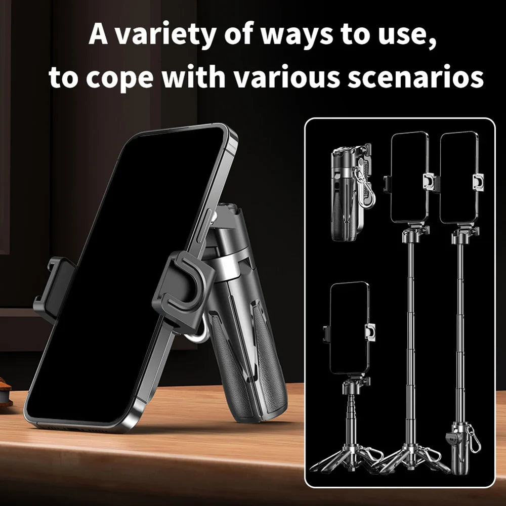 Con el trípode selfie, podrás capturar fotos y videos desde cualquier ángulo, asegurando resultados impecables como un verdadero profesional. La comodidad de sus funciones te permite realizar grabaciones con total confianza y calidad.
